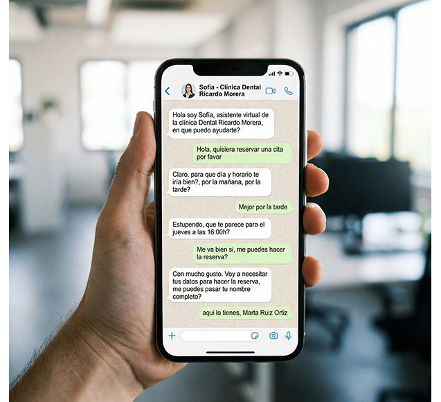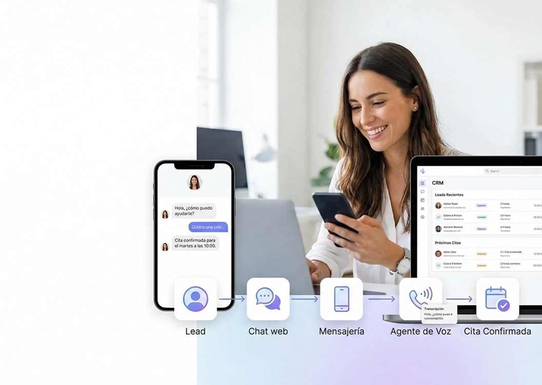 Diseñamos tu flujo (captación → cualificación → cita) y lo dejamos funcionando paso a paso.
